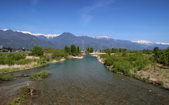安曇地方は3,000M級の北アルプス連峰のふもとで、雪解け水のきれいな清流が流れ、安曇地方のお米はその清流によって育っていますので、お米が活き活きと育ちます。