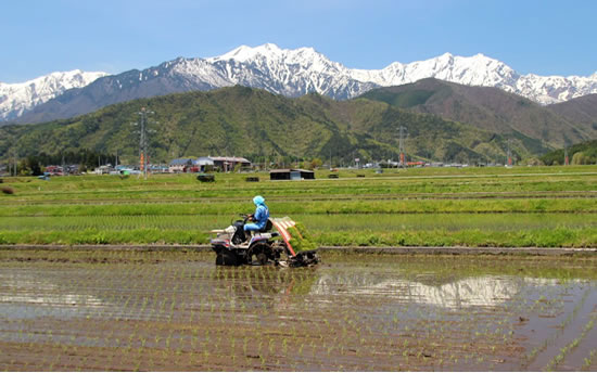 安曇地方のお米つくりは大自然の中で、昔ながらの稲作技術を引き継いでいますので、しっかりとした形の良いお米を作ります。