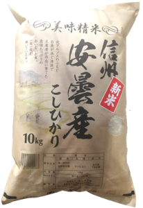 安曇産こしひかりは、品質の一番良い厳選米を使用していますので、甘さや粘りが多く味や品質に間違いがありません。長野県の中でも1位・2位を争うほどの名ブランドと言って良いほどの自信があります。