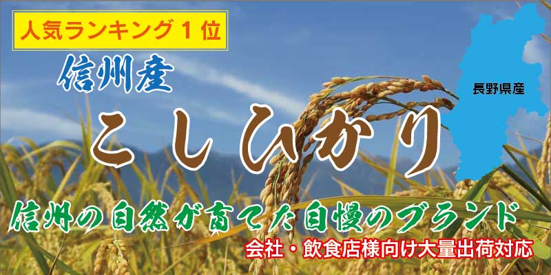 信州(長野県)産こしひかりは、でんぷん・粘り・甘さ・硬さのバランスがとてもよく、味と品質は間違いありません。